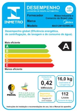 Lavadora de Roupas Midea Wave Impeller 16kg MA512W160/WK-04 Branco 110V