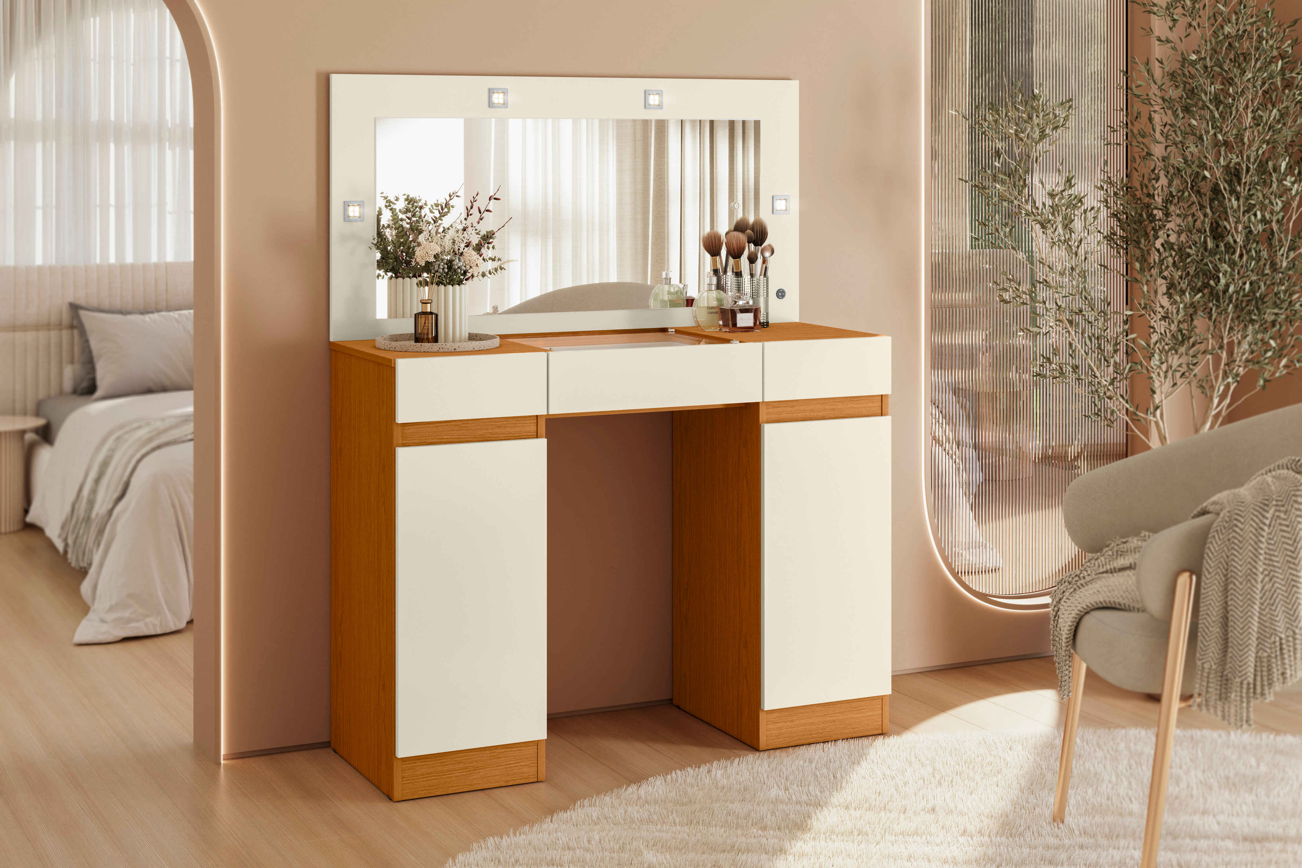 Penteadeira com Espelho Albatroz Camarim Studio 2 Portas 3 Gavetas Cinamomo/Off White