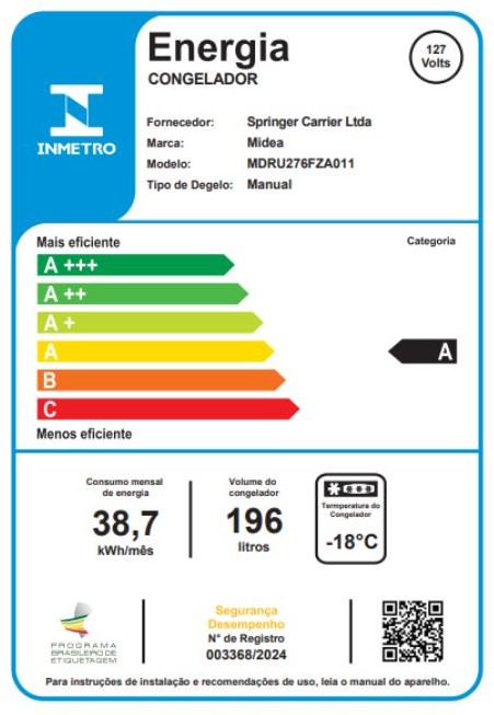 Freezer Vertical 1 Porta Midea MDRU276FZA011 196 Litros Branco 110V